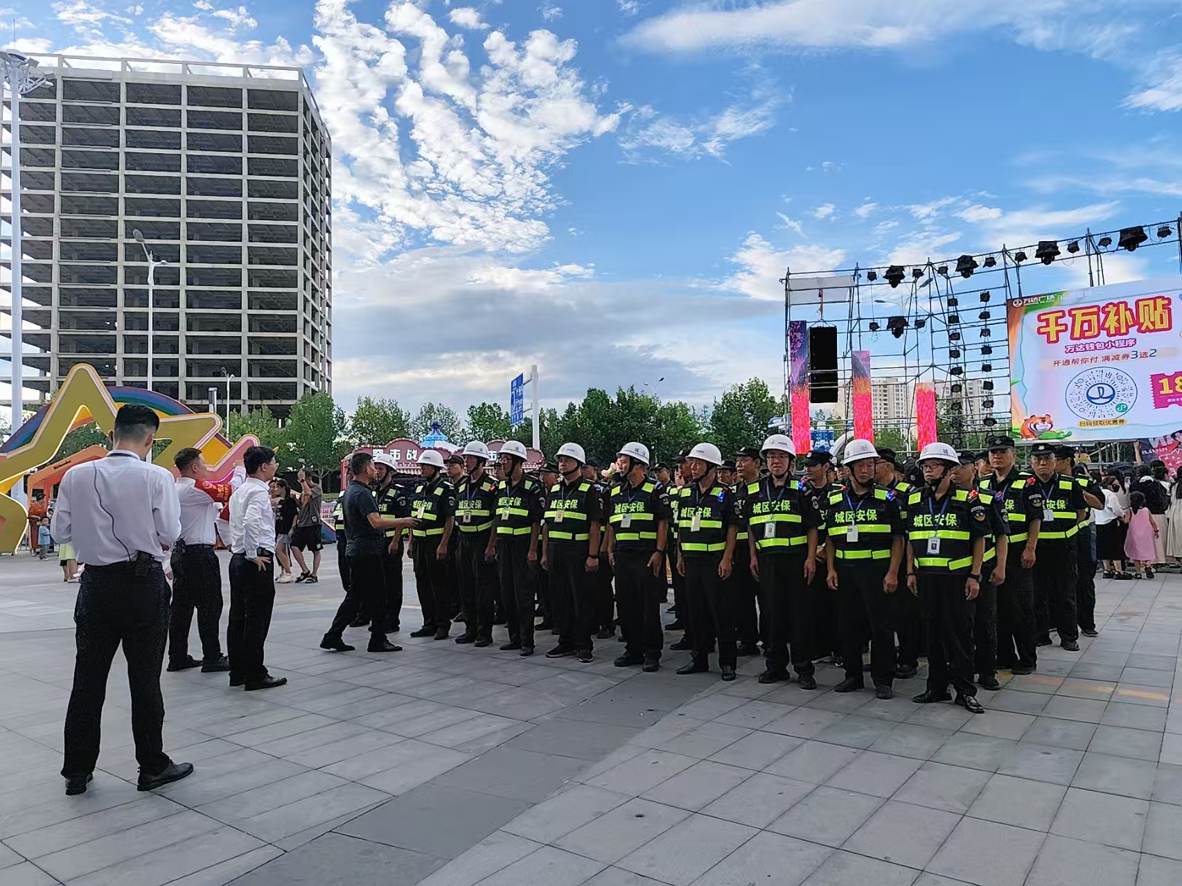 活動期間,城區(qū)保安人員按照既定方案,每天晚上6點到崗到位,配合公安、消防等部門做好秩序維護、交通疏導及服務(wù)保障等工作。出入口崗位的保安負責引導群眾有序進出,舞臺周邊的保安重點維護觀眾秩序,防止擁擠、踩踏等危險情況發(fā)生。盡管每天晚上工作時間長達6小時,他們時刻保持警惕,沒有絲毫放松,F(xiàn)場人流量一度突破萬人次,但執(zhí)勤保安始終用規(guī)范的動作、耐心的態(tài)度引導人流,以嚴謹?shù)墓ぷ髯黠L和飽滿的精神狀態(tài)為活動保駕護航。