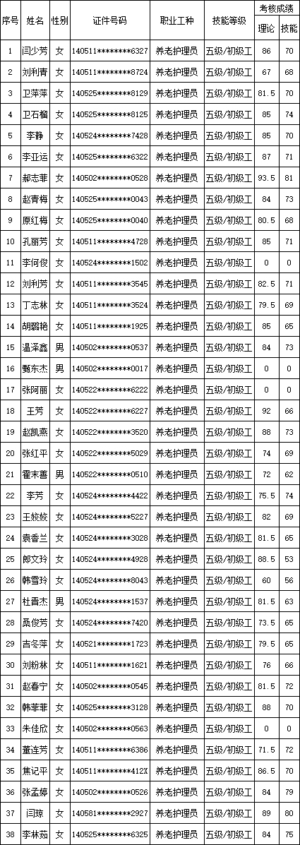 山西潔霸清潔服務(wù)集團(tuán)股份有限公司職業(yè)技能等級(jí)認(rèn)定中心現(xiàn)將2025年11月9日認(rèn)定人員成績(jī)公示如下: